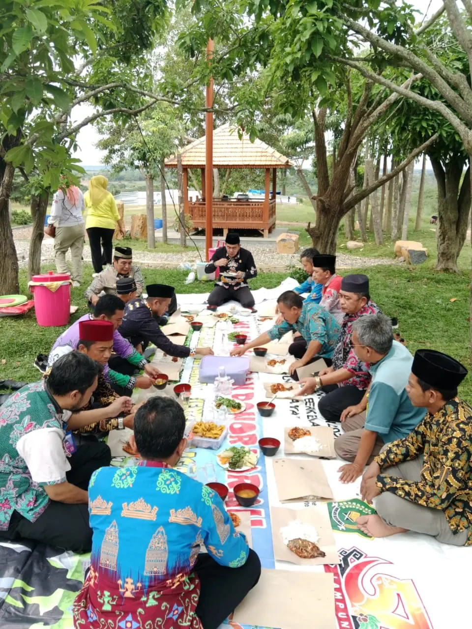 Makan siang juga disetting tetap bernuansa kebersamaan dengan makan secara lesehan bersama di bawah pepohoan di area Cakat Raya.